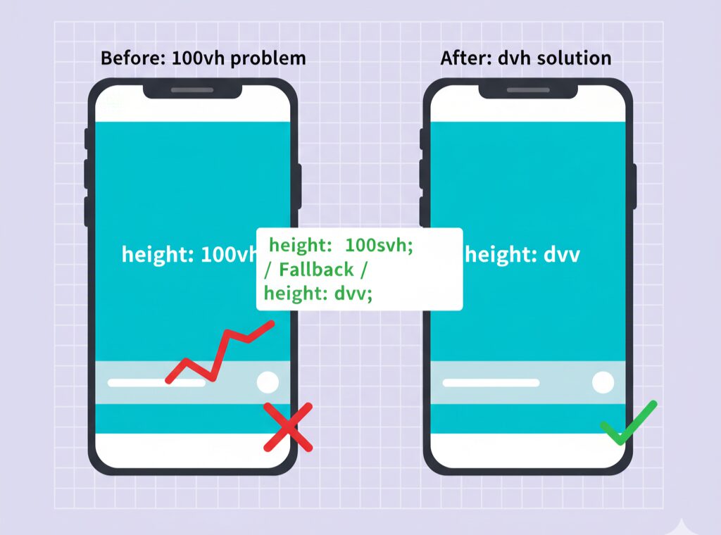 実は「高さ(height)」は、横幅よりもずっと制御が難しいプロパティです。親要素との依存関係、ビューポート単位の扱い、ブラウザの仕様差など、複数の要因が絡み合ってレイアウト崩れを起こします。特にスマホやSafariでは、同じCSSでも高さの挙動が異なるため、正しい理解と実装テクニックが欠かせません。